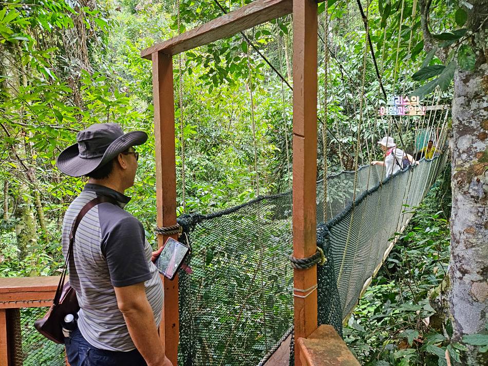 사실 입구에서 캐노피 워크웨이까지 아주 먼 거리가 아니지만 경사가 있고 (이날 비가 와서) 바닥이 미끄럽다 보니 확실히 어느 정도 칼로리 소모가 되는 곳이었다. 저질체력인 분들이 있었는데 무척 힘들어했다. 나는 뭐 좀 힘드네 정도. 이날 투어에 참여한 일본인은 숨을 헐떡여서 가이드가 괜찮냐고 몇 번 물어봤을 정도. 괜찮다고 하는 데 얼굴이 괜찮지 않았음 ㅋㅋ 거의 저질체력이었음. ㅋ