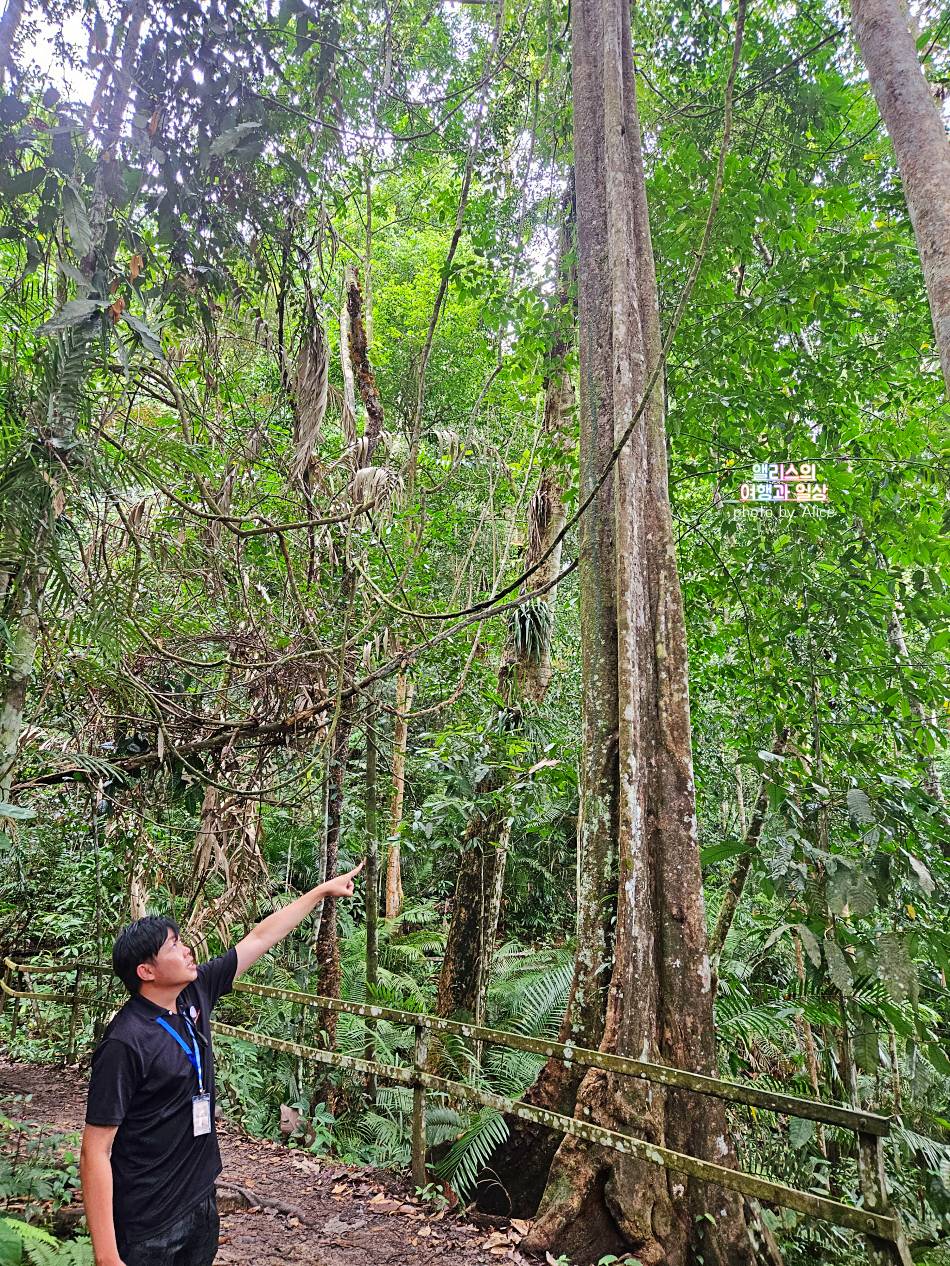 너무 오랜 시간 트래킹 하는 것이 아니어서 부담되지 않았다. 걸으면서 다양한 식물들도 볼 수 있고 가는 길에 도마뱀도 보았다. 이곳에서 가장 크고 높은 나무도 보고 가이드의 설명을 들으면서 키나발루 국립공원을 걷는 시간도 꽤나 좋은 시간이었다. (그리고 점심도 맛있었음!)