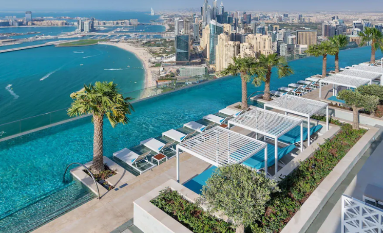 호텔 꼭대기에 3개의 수영장이 있어서 여유로운 수영시간을 보낼 수 있는 호텔이다. 두바이의 전망을 보며 수영할 수 있는 것 역시 특징.