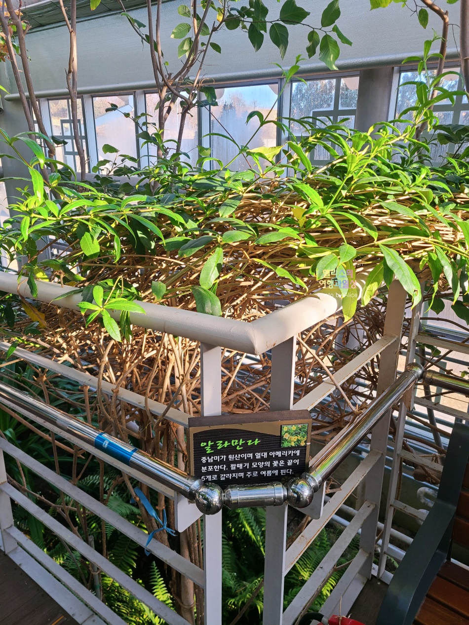 겉에서 보면 2층으로 된 크고 넓은 한옥 구조의 모습. 그리고 그 겉을 모두 둘러싼 유리창. 아주 독특한 구조였다. 이 유리창 덕분에 온실효과로 다양한 식물들이 살아갈 수 있을 터이니 계절 상관없이 언제나 방문해도 좋은 곳이 아닌가 싶다.