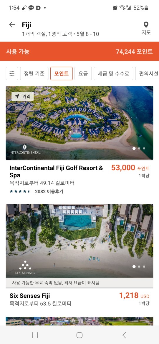 예를 들어 피지섬에 있는 인터컨티넨탈 리조트를 예약한다고 하자.