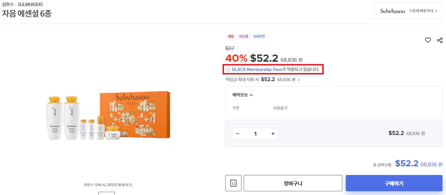 모든 브랜드에 적용되는 것은 아니지만 제법 대다수의 제품과 브랜드들을 구매할 때 블랙 등급의 할인이 적용된다. 이 덕분에 동일 제품이더라도 좀 더 저렴하게 구매 가능하다는 장점이 매우 크다.