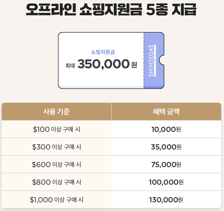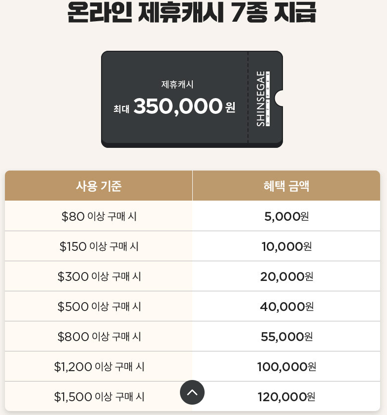 추가로 사용할 수 있는 온라인 신세계 면세점에서 사용가능한 캐시도 지급해 준다. 위 조건에 부합할 경우 별도로 사용할 수 있는 할인혜택이라 상당히 유용하다.