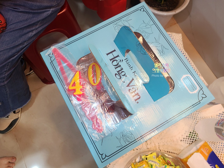 부모님 결혼 40주년을 기념으로 여행 왔고 아오자이 입고 스냅사진을 찍을 예정이라고 아오자이 샵 사장님께 이야기했더니 축하한다고 해주시며 부모님 영어이름을 물어보셨다. 왜 물어보는지 몰랐지만 알려달라고 하셔서 알려드렸는데 세상에... 다음날 빌린 아오자이 옷을 돌려주러 갔는데 이렇게 맛있고 예쁜 케이크에 40주년 결혼기념을 축하한다고 레터링을 해서 선물을 주는 것  아닌가!