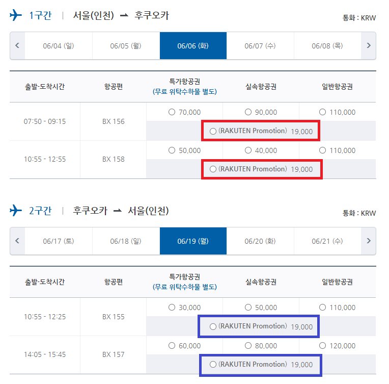 ■ 부산 - 후쿠오카 노선 프로모션 가격