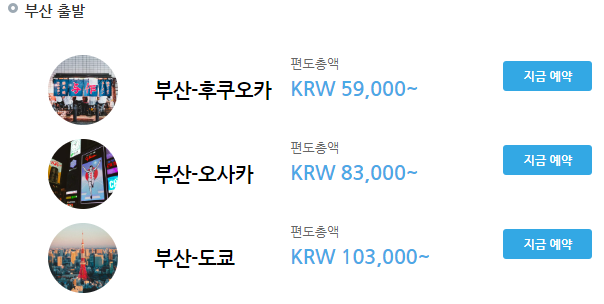 2. 부산 - 일본 노선 가격 편도 59,000원