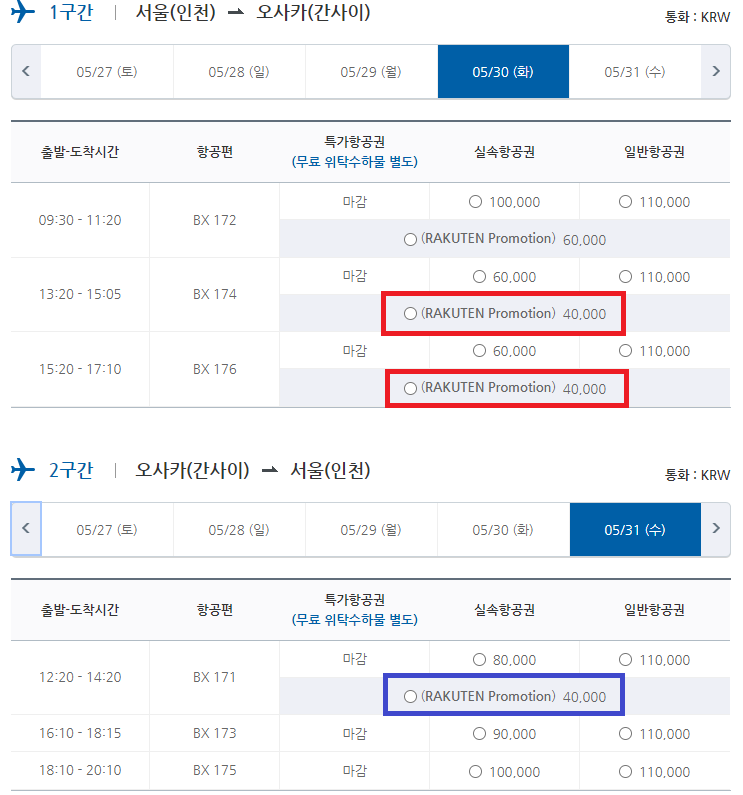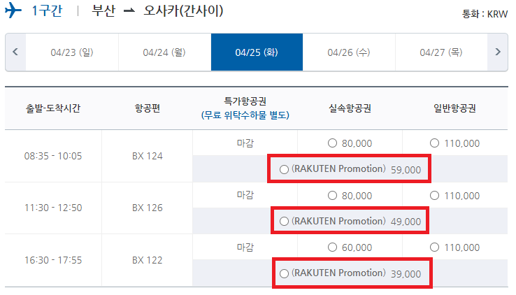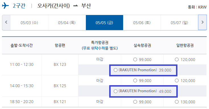 ■ 부산 - 오사카 노선 프로모션 가격