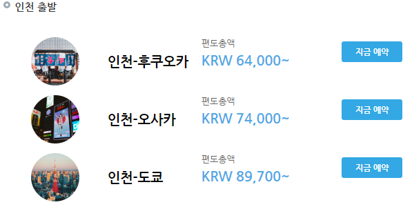 3. 인천 - 일본 노선 가격 편도 64,000원