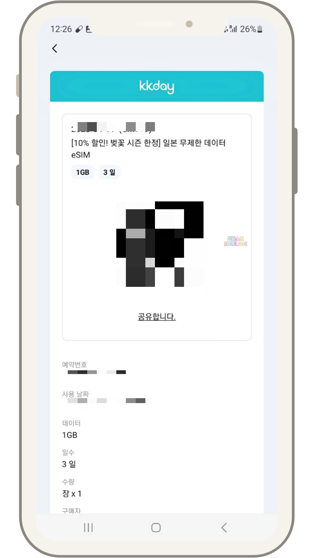이때 구매한 곳에서 보내준 QR코드를 읽힌다.