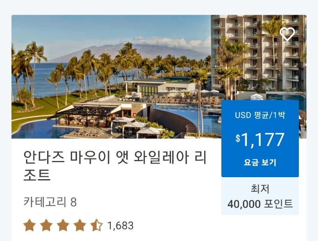 전 세계에 약 1,300개 정도 프로퍼티가 있으니 일일이 확인해 보는 것이 쉽지 않다. 하지만 내가 여행할 지역에 포인트 예약이 훨씬 저렴하다거나 혹은 미리 포인트를 사두었다가 필요할 때 사용할 예정이라면 포인트를 구매해 두는 것이 좋다.