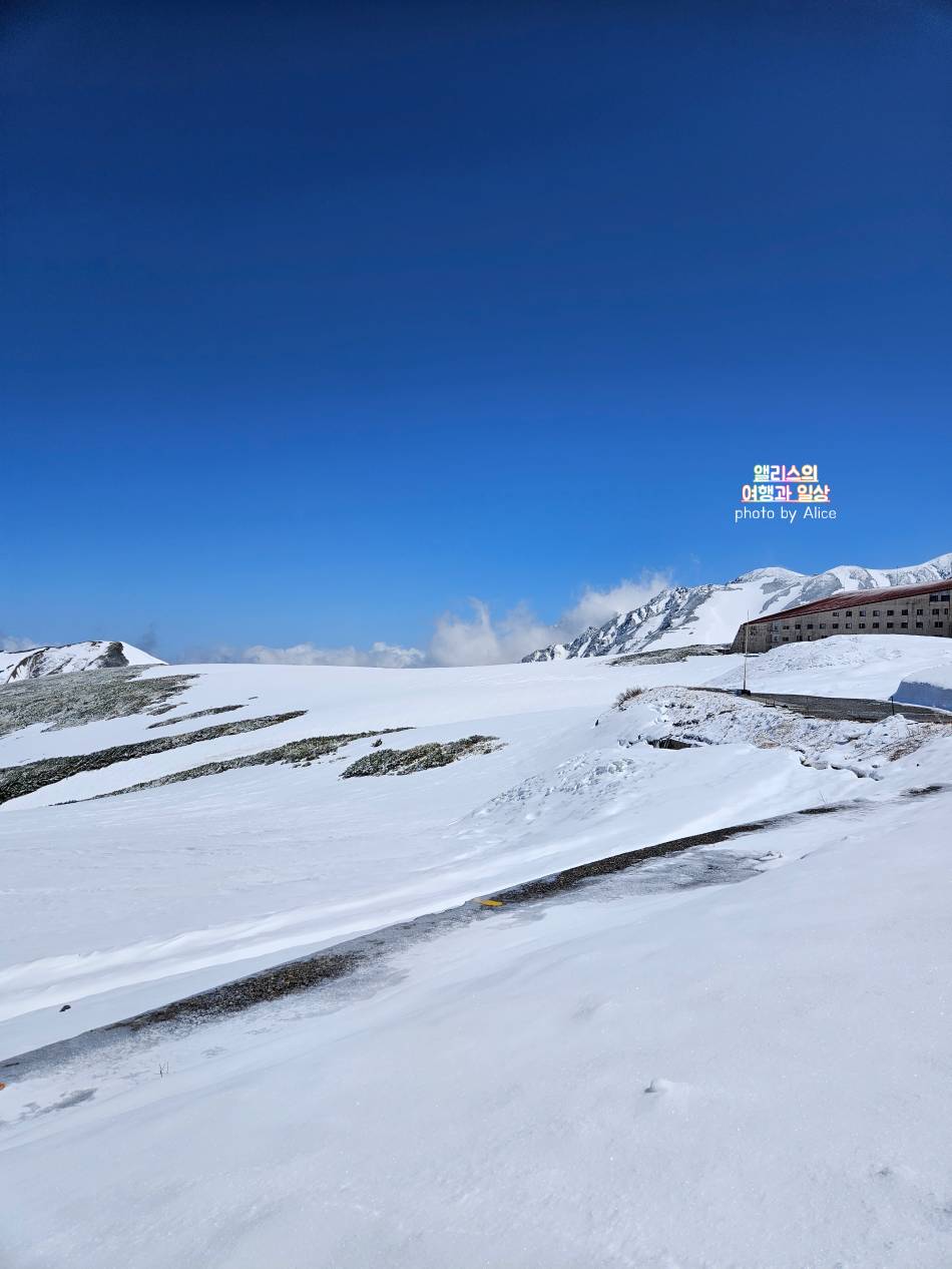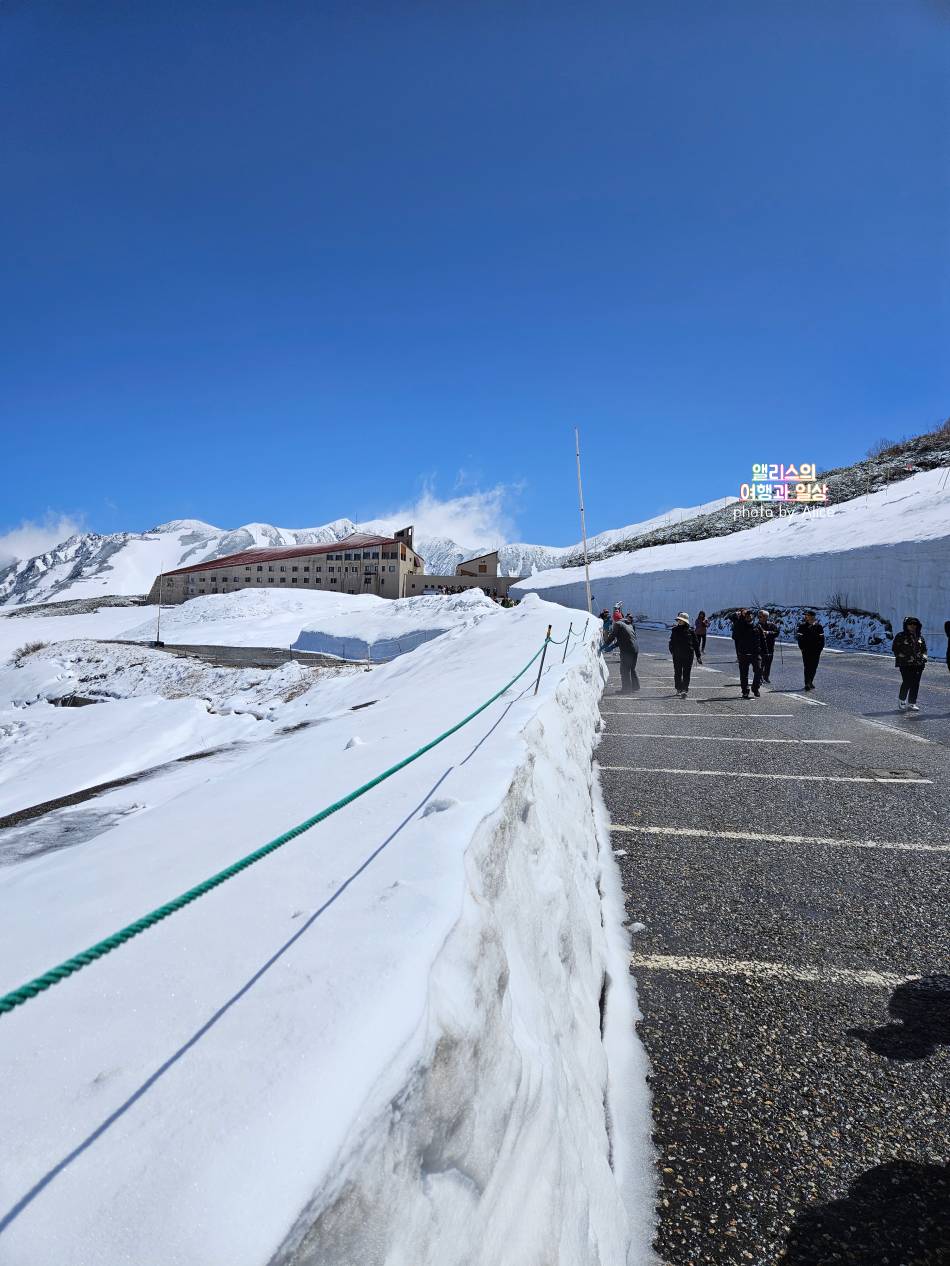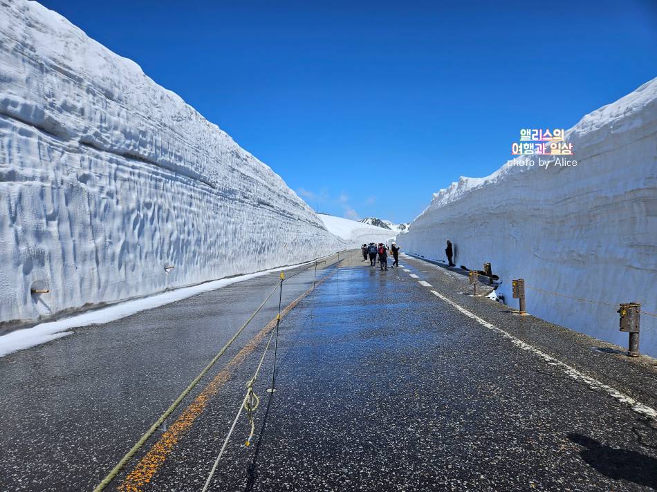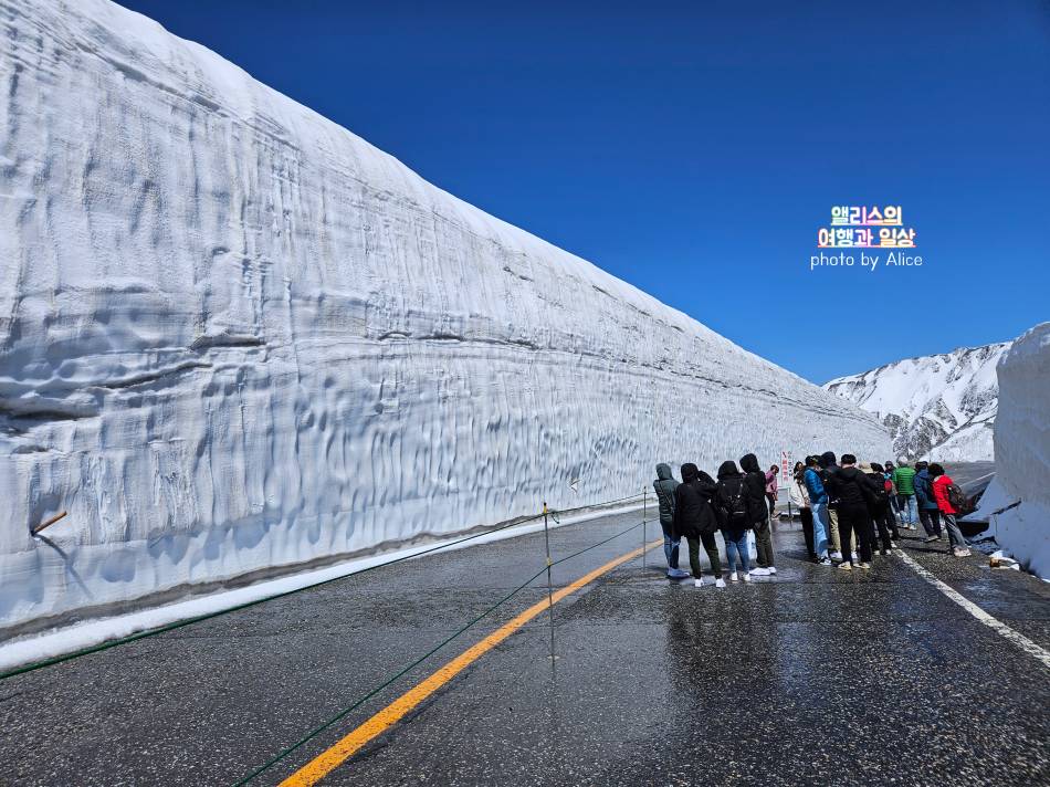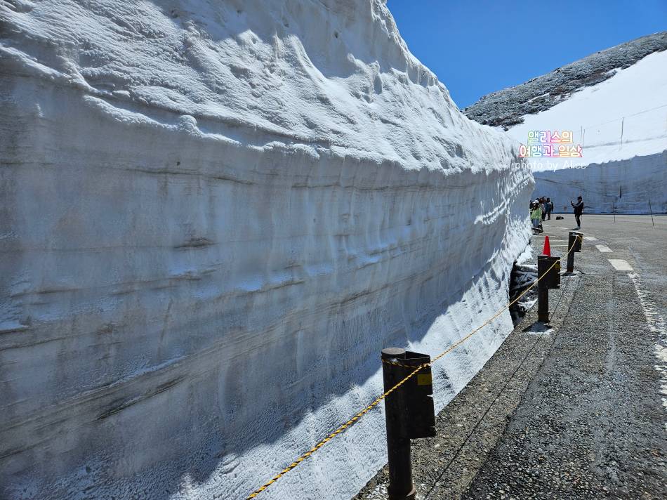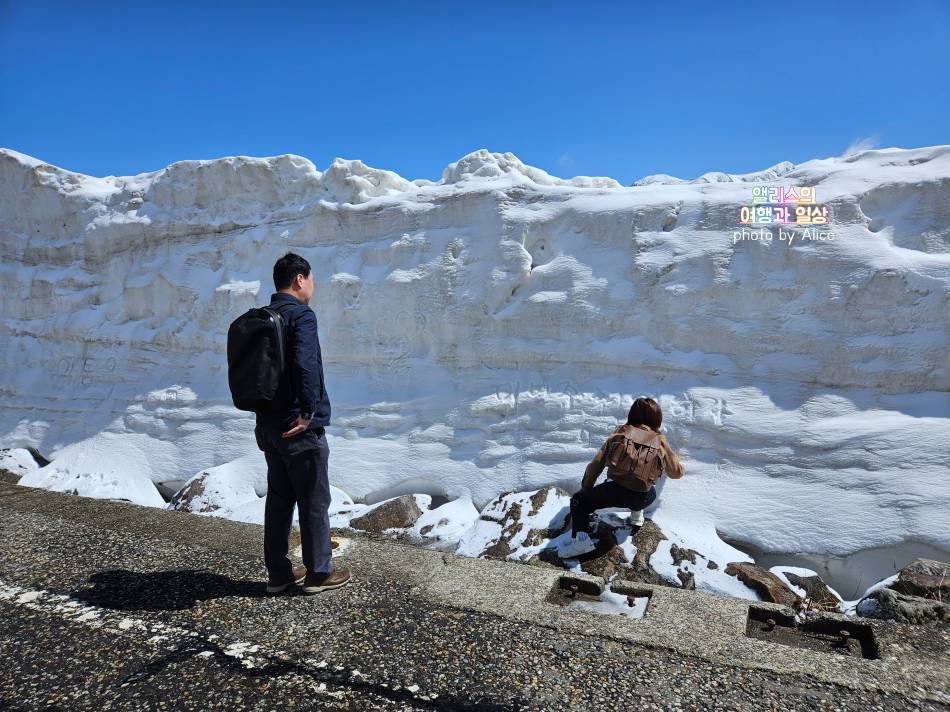 원래 최대 높이는 20m 정도로 높은 설벽이지만 현재 날이 따뜻해서 눈이 급격히 많이 녹아내렸다. 지금은 최대 높이 7~10m 정도 되는 것 같고 모든 구간의 높이는 제각각이었다. 20m 높이의 설벽을 볼 수 없음은 아쉬웠지만 그래도 5월에 이 엄청난 설벽을 직접 눈으로 볼 수 있는 것이 정말 신기했다.