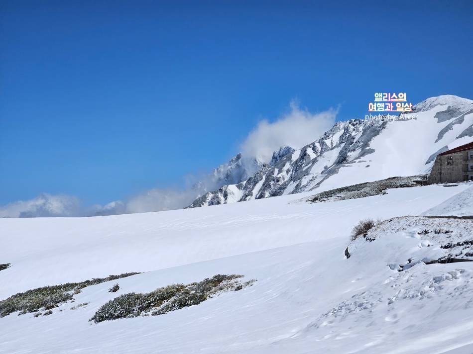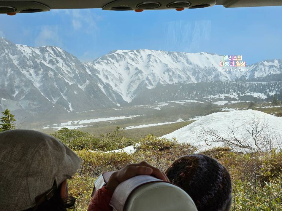 알파인 버스릍 타고 무로도로 이동할 때 운무가 있는 공간을 벗어나서 서서히 설산이 눈에 보이기 시작하자 버스에 탄 모든 사람이 흥부 하기 시작했다. 그 풍광이 사진으로 다 담아낼 수 없을 만큼 어마어마했기 때문이다.