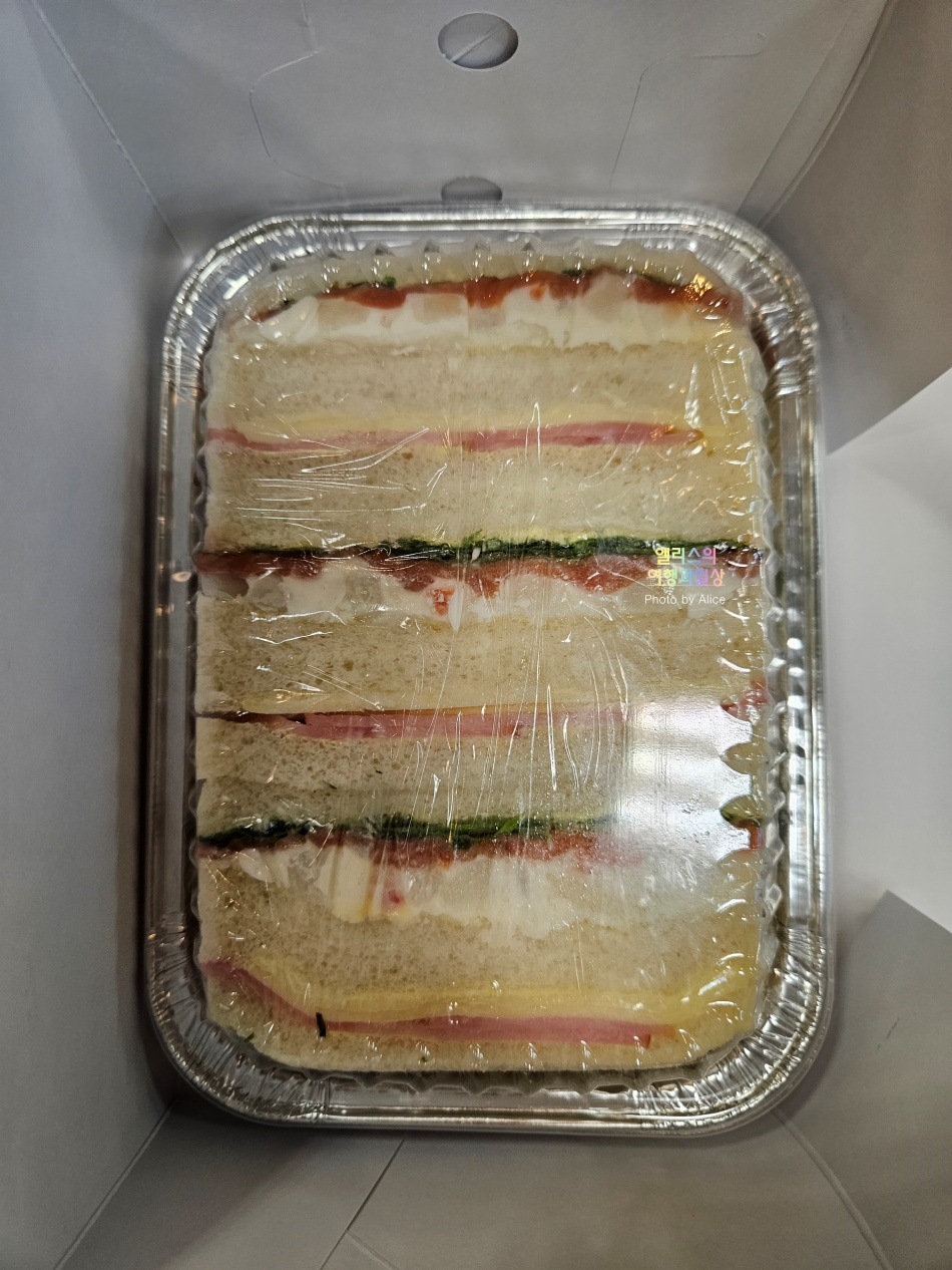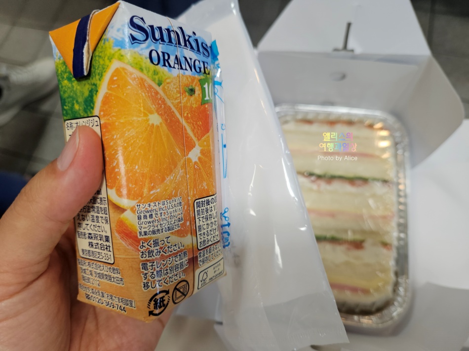간단한 샌드위치라고 하지만, 햄&치즈 샌드위치와 생연어&감자 샐러드 샌드위치, 그리고 오렌지 주스를 준비해 주었다. 덕분에 아침 일찍 출발하지만 기차를 잠시 기다리면서 샌드위치를 맛있게 먹을 수 있었고 든든히 알펜루트 여행을 할 수 있었다.