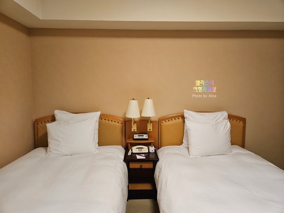 싱글베드 두 개가 있는 트윈베드이지만 싱글베드 자체가 너무 작지 않아서 좋았다. 충분히 1인이 사용할 수 있는 공간이면서 적당한 넓이라서 전 일정상 이용하기에 무척 편리했다.