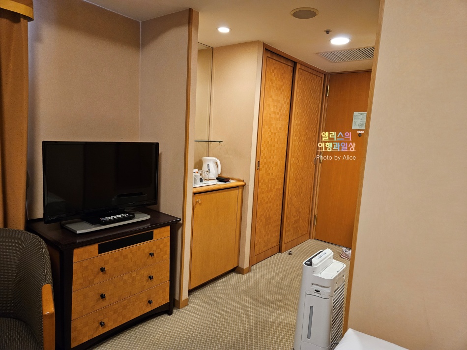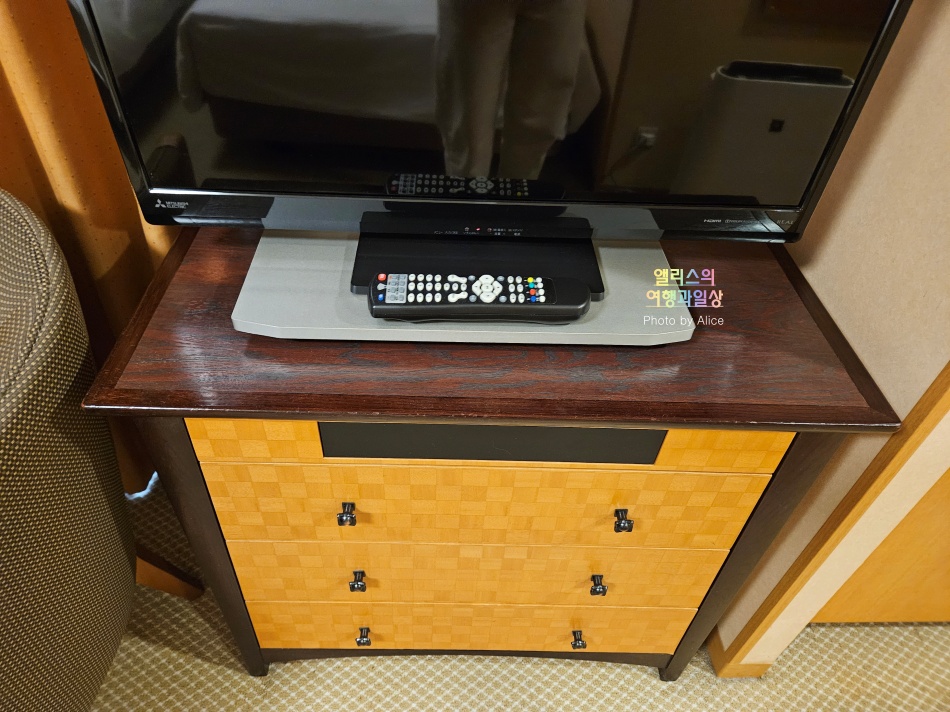 TV아래 수납장을 열어보면 잠옷이 준비되어 있다. 일본 호텔은 항상 이렇게 잠옷을 객실마다 준비해 주는데 덕분에 정말 편하게 입을 수 있다.