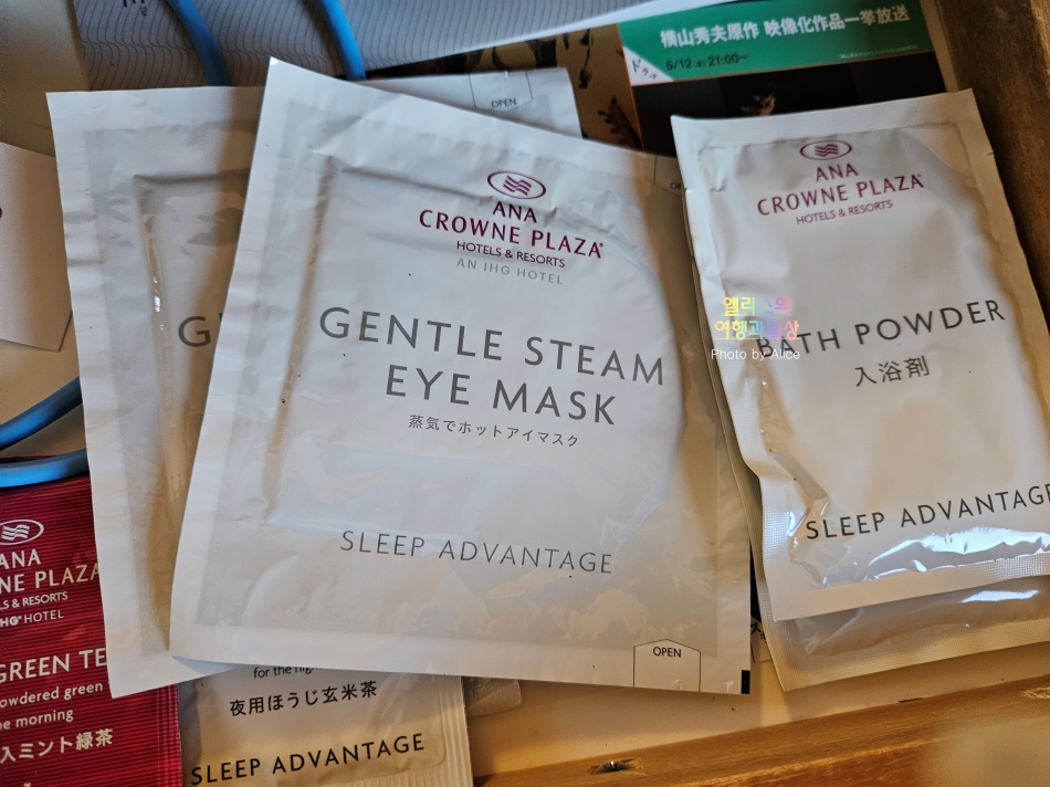 아주 특이하게도 입욕제와 눈을 따뜻하게 해주는 안대, 녹차 티백등은 책상 서랍에 있으니 참고하자.