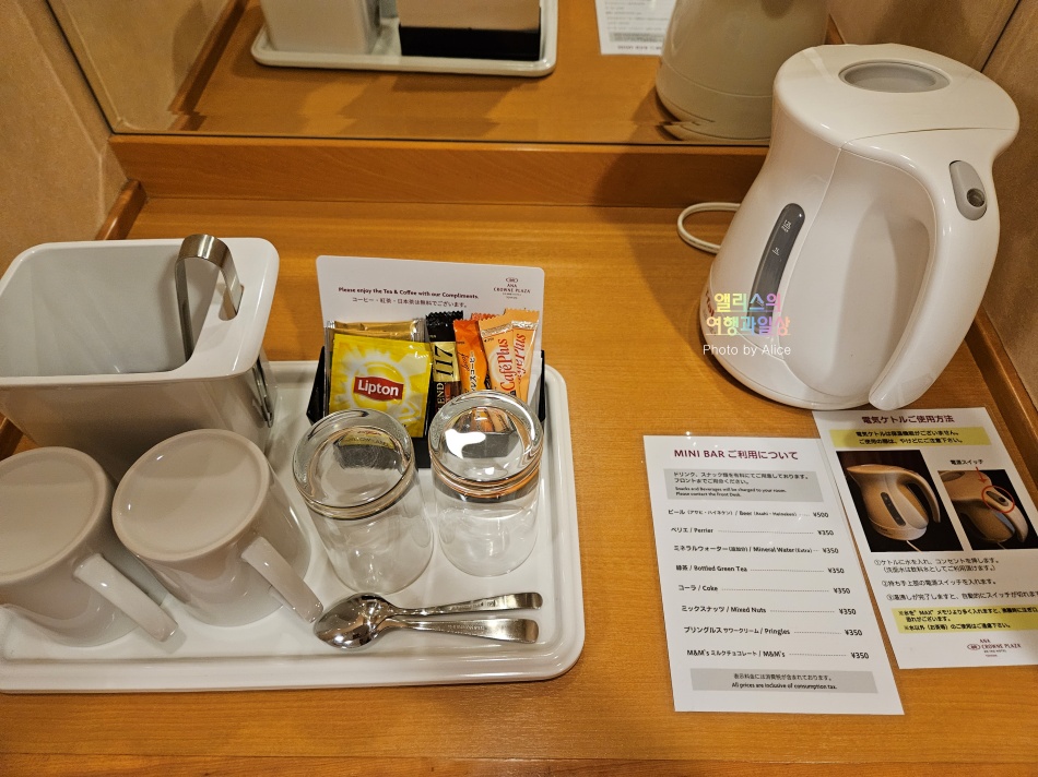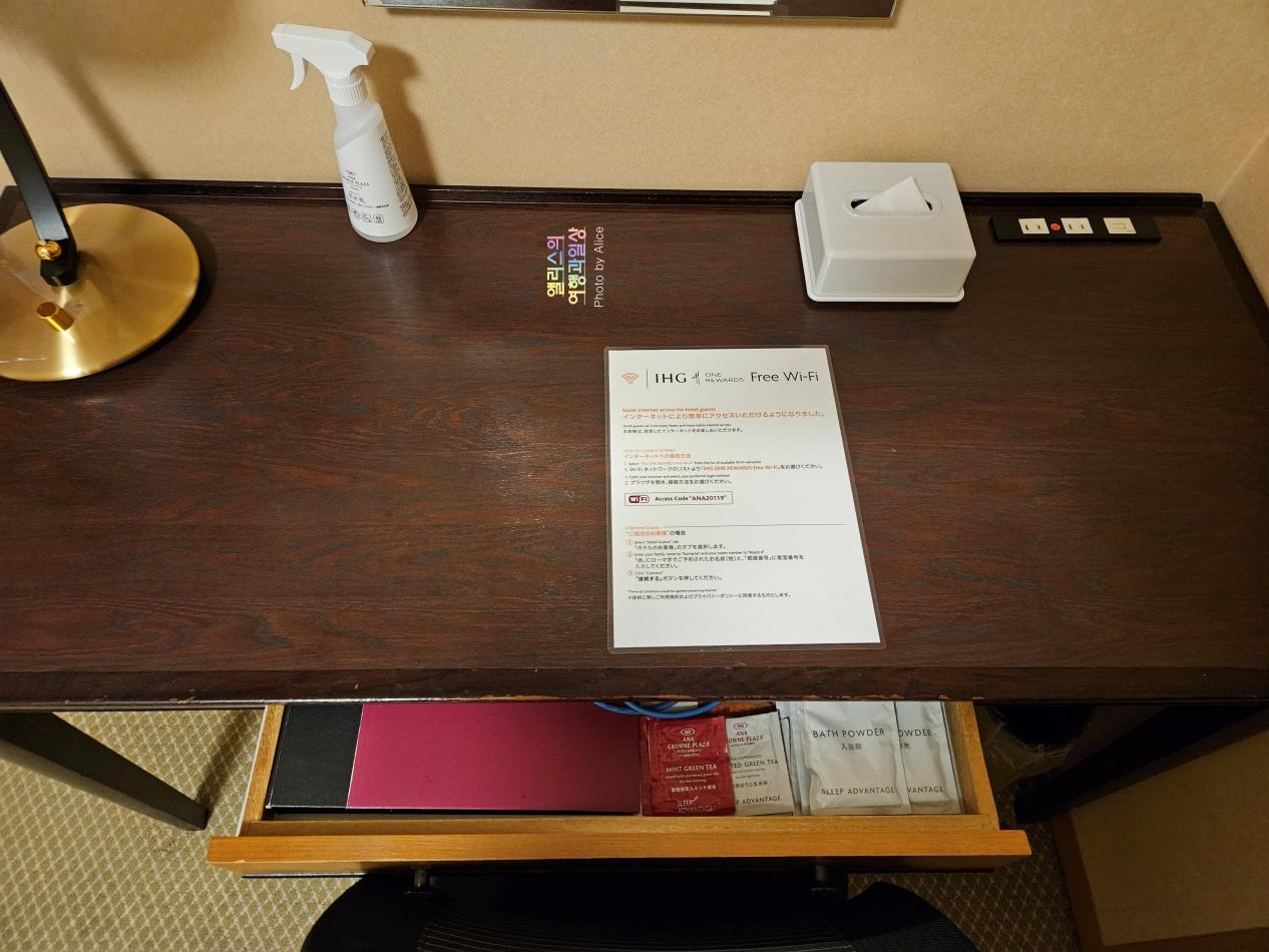 원래 예약은 가장 기본 스탠다드 룸이었지만 IHG 다이아몬드 멤버십 덕분에 무료 업그레이드 도었다. 일본 특유의 좁은 룸을 예상했다가 넓은 룸이 배정되니 호텔에 무한 감사를~ 기분도 좋았다.