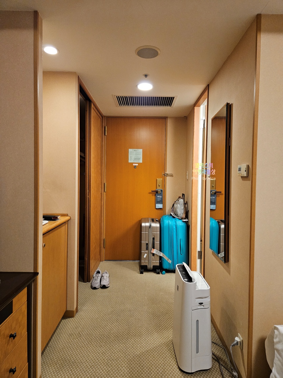 입구에 별도의 가습기가 준비되어있었다. 나는 사용하지 않았는데 오가면서 직원분이 자동으로 켜주셔서 사실 나는 딱히 신경 쓰지 않았다. 입구가 넓은 편은 아니지만 일본에서 이 정도면 상당히 넓고 편안한 복도라고 생각된다.