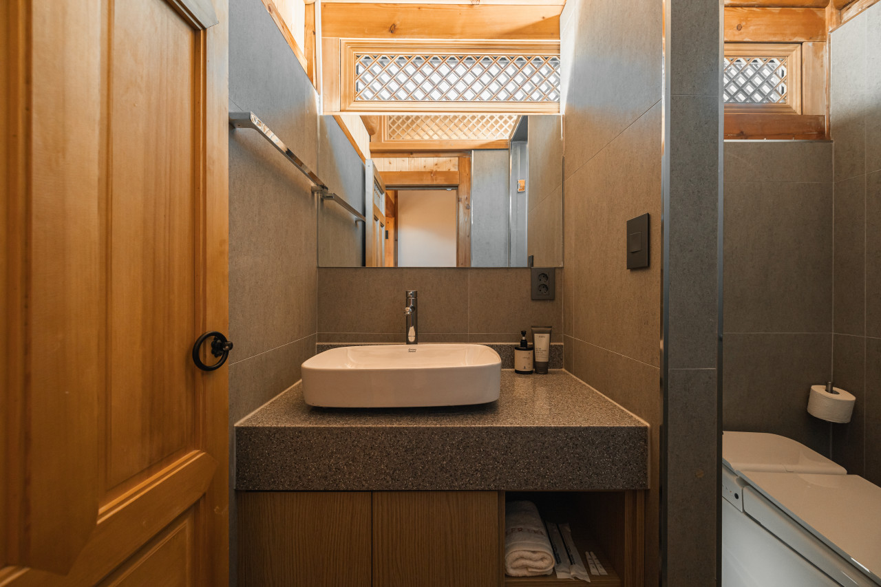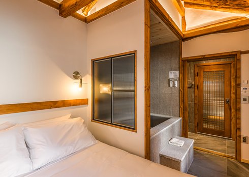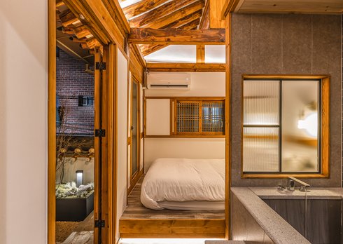도심에서 만나는 한옥이라는 컨섭에 매우 충실한 한옥독채로 욕실내 음성제어 시스템으로 조명, 음악등 조절가능한 자쿠지는 물론 입욕소금까지 완벽하게 준비되어 있다.