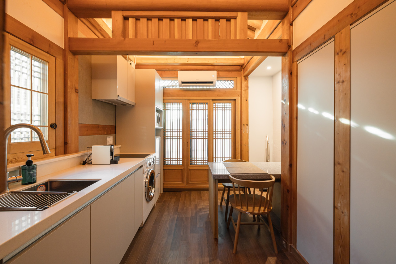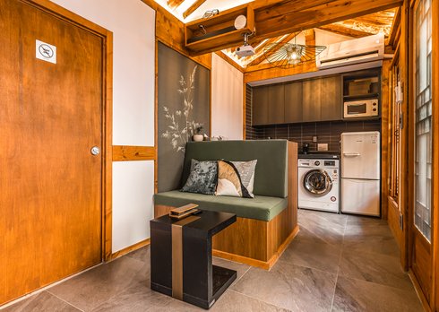 주방에는 식기류가 최대인원에 맞게 구비된 있으며 서촌 위치해서 맛집, 카페가 많아 주변에 미식탐방을 해도 좋다. 경복궁역 가까워서 접근성 좋으며 모바일체크인(무인) 시스템으로 입실 가능하다.