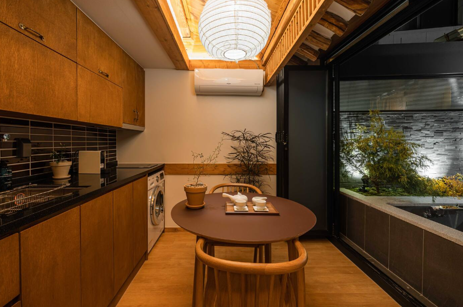 공간 자체가 넓지 않지만 아기자기하고 소박한 한옥느낌이 매력적이며 주방에서 조리 가능하며 정수기가 설치되어 있다. 욕실과 부엌은 수압이 세고 온수가 잘 나오며 자쿠지욕조에는 입욕 소금이 있다.