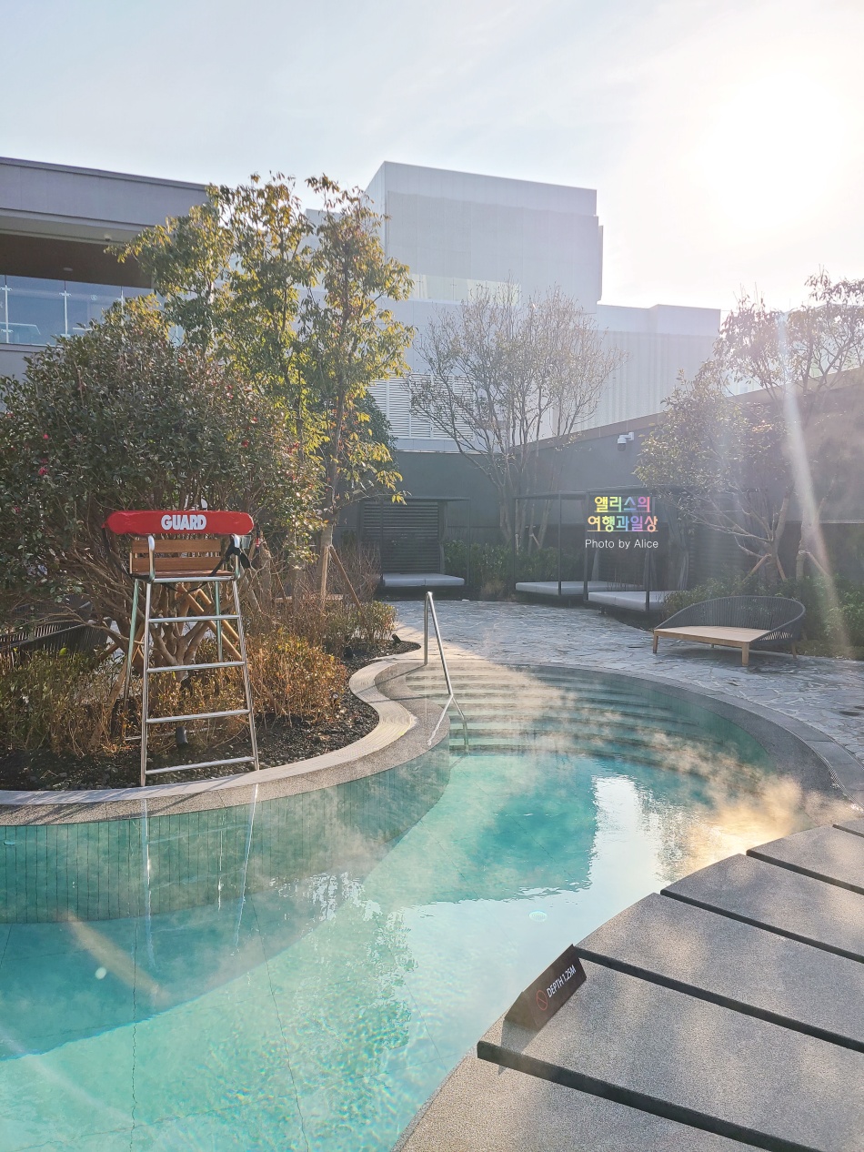 기존의 야외수영장과의 모습이 완벽하게 달라진 곳이라 특히 밤이 더 아름답다. 그런데 참고로 아침에는 아~~ 무도 없어서 아침 수영을 추천하는 바~