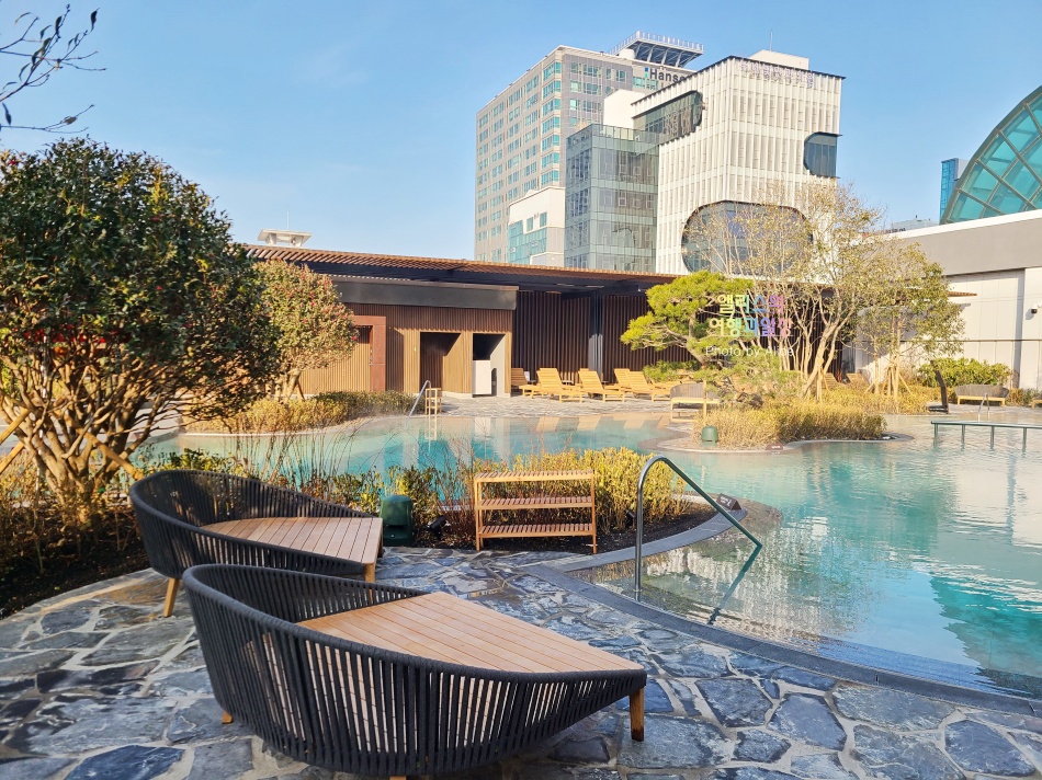 부산 도심지 한가운데서도 바캉스 느낌을 물씬 낼 수 있고 계절 상관없이 (겨울에는 온수) 야외수영장을 이용할 수 있다는 점도 장점이다.