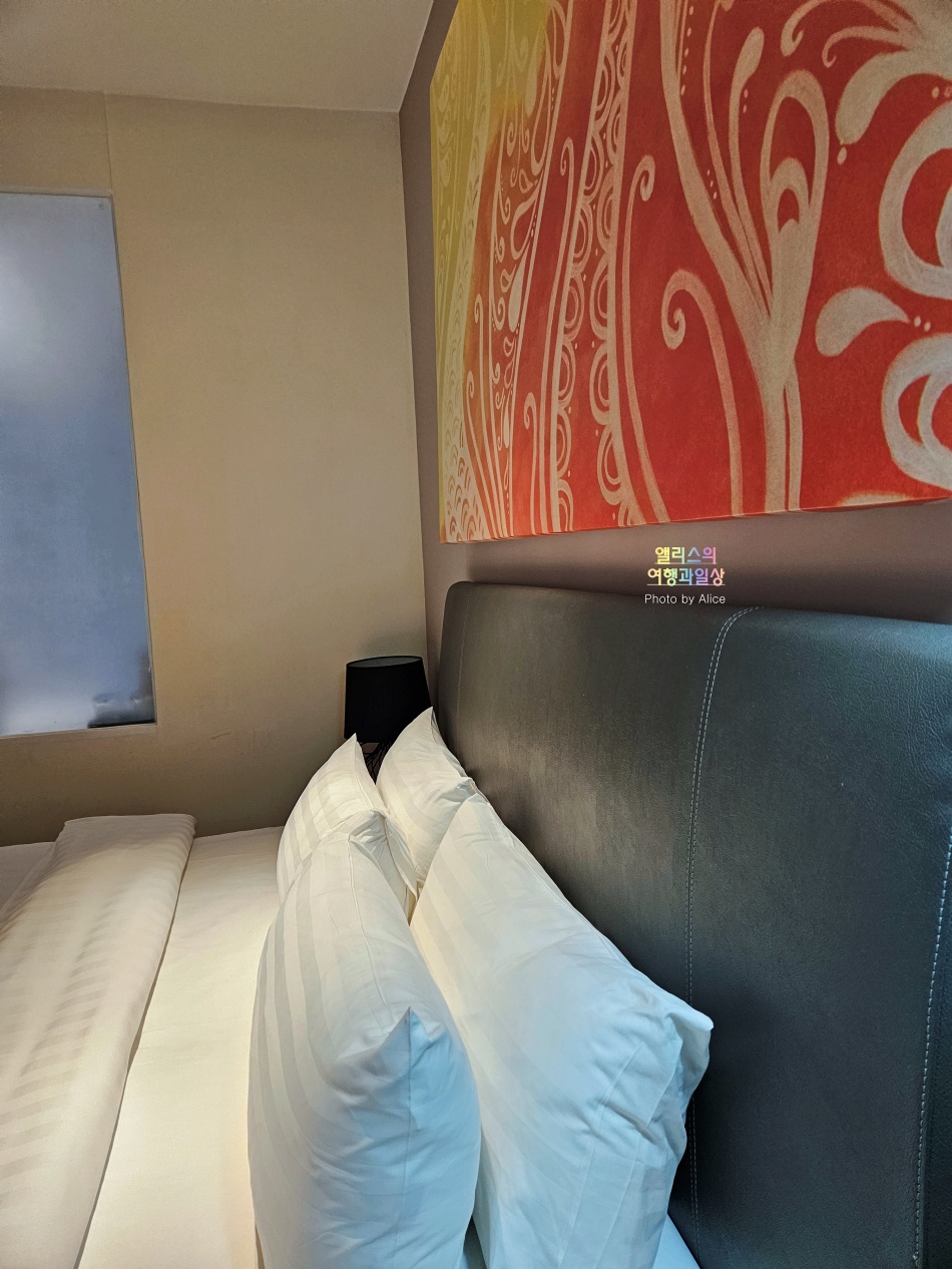 침구류 깔끔하고, 더운 날씨의 코타키나발루 생각하면 딱 적당한 두께의 침구류와 적당히 얇은 네 개의 베개까지. 전반적으로 침대 매트리스도 짱짱해서 정말 편리하게 잠을 청할 수 있었다.