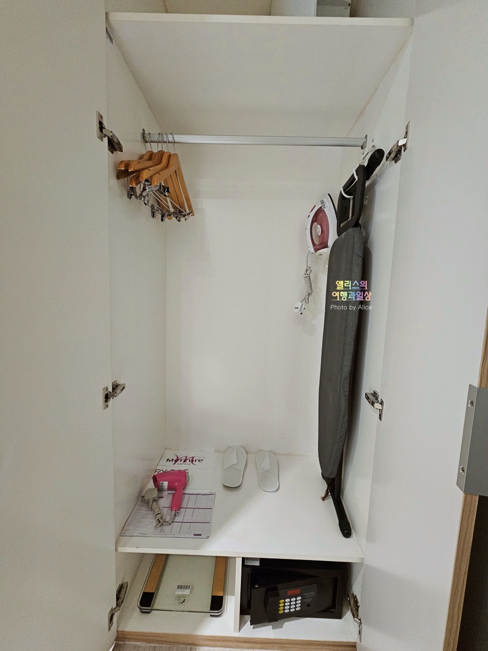 별도의 샤워가운이 없으니 참고하자. 그렇지만 넉넉한 옷걸이, 체중계, 금고, 다림질 세트까지 샤워가운이 없다는 것만 제외하면 나머지는 필요한 것들이 모두 갖춰져 있다.