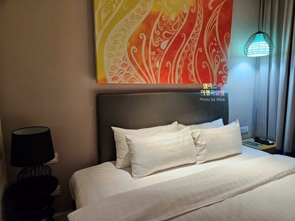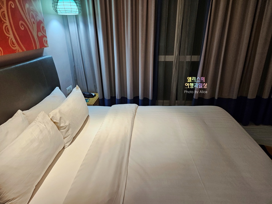 침대 사이즈는 킹베드라고 하는데, 체감하기로는 아주아주 크다는 느낌은 매우 적었다. 그렇다고 좁고 그런 것은 아니었고 그냥 내 기대치보다는 크지 않은 느. 낌.이랄까.