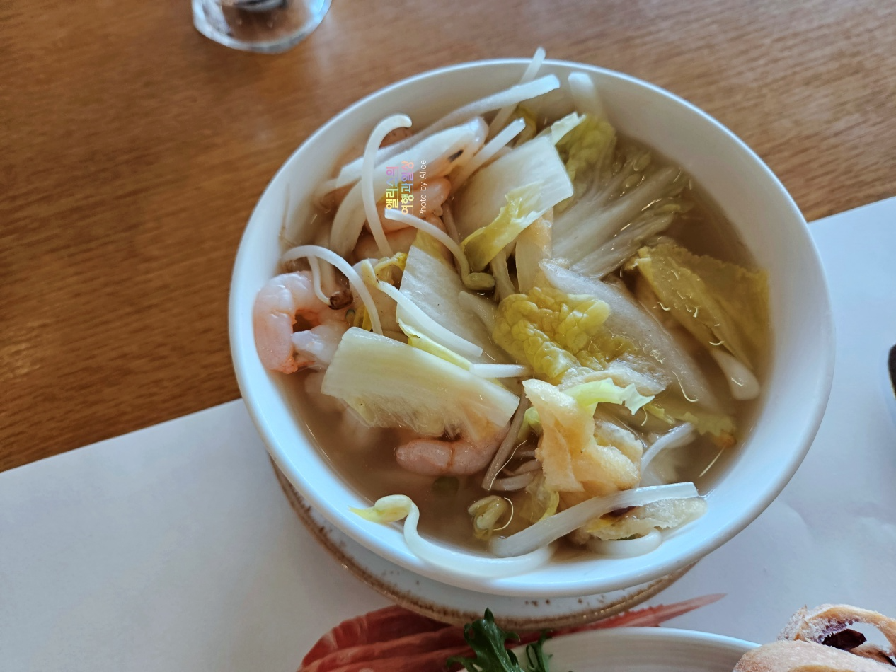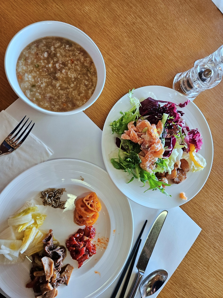 그리고 샐러드 종류도 한국에서 이정도면 충분하다고 보고 아침에 든든하게 쌀국수와 해산물을 활용한 죽도 제공되니 이 부분도 좋았다. 전반적으로 음식도 맛있고 괜찮았던 조식이었다.