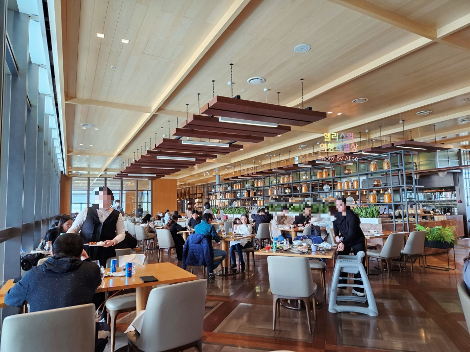 오전 7시에 가서 그런가.. 평일이라 그런가. 사람들 몰릴 때에는 제법 몰리는 데 스카이 온 파이브 다이닝 자체가 충분히 넓고 테이블수가 많아서 사람이 많아도 대기 시간이 길지 않다는 게 장점이다.
