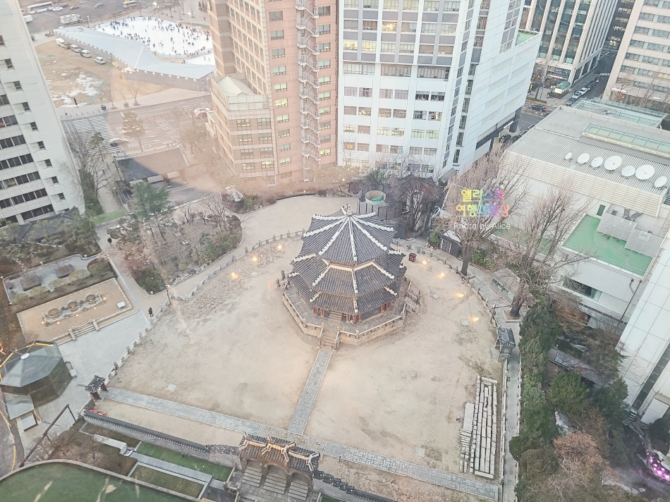 웨스틴 조선 서울의 시그니처인 환구단 뷰와 저 멀리 시청 앞 뷰를 함께 즐기면서 혼자 즐기는 칵테일 아워.