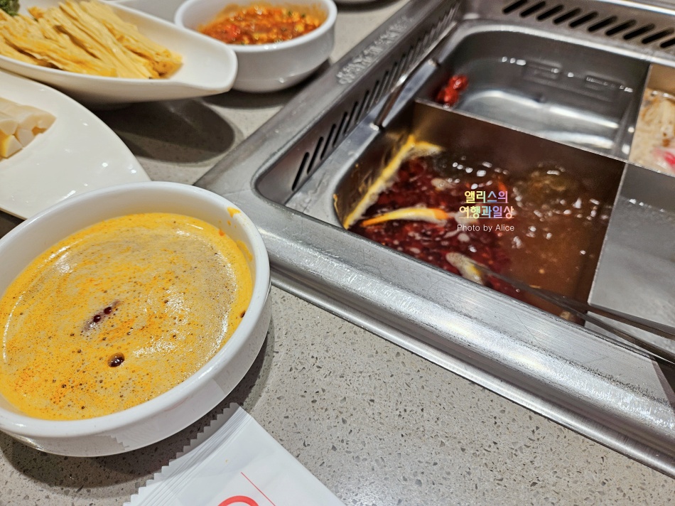 ① 맛보기 국물은 마라탕(기름 제거한 부분) 육수 + 버섯탕 육수를 1:1 비율로 섞으면 아주 맛나다.