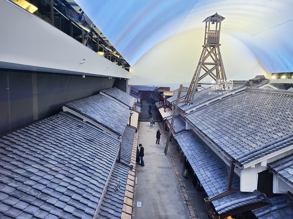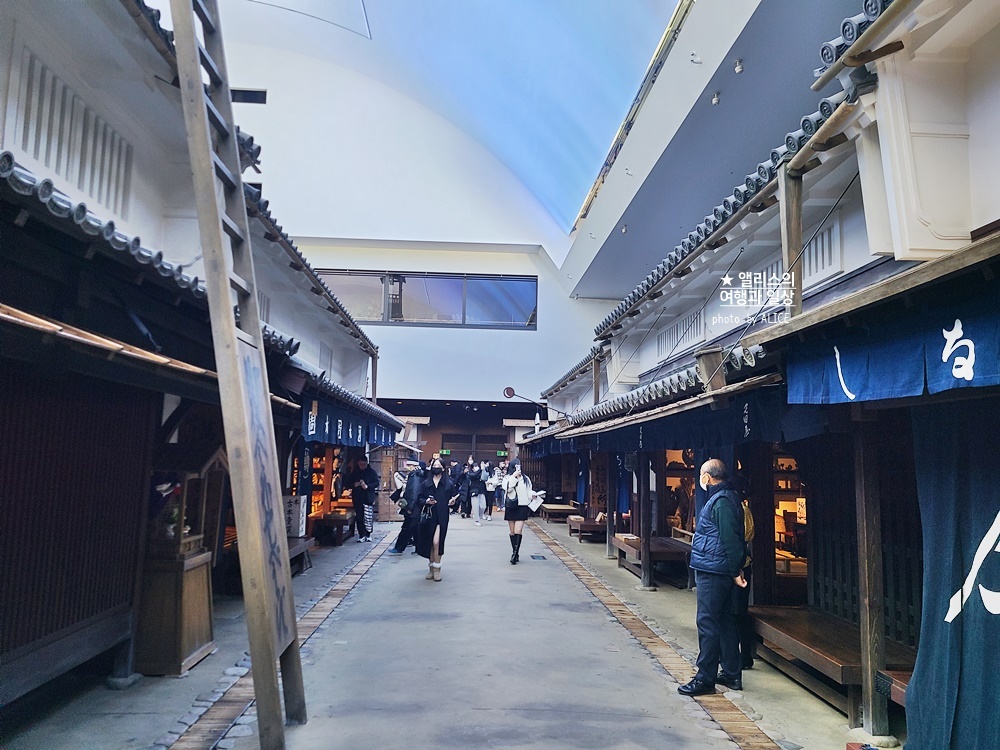 마을 내 의류점, 잡화상 등의 상점부터 서민들의 생활공간에 이르기까지 다양한 거리 모습이 학술 연구에 근거해 재현되어 있다. 관람객은 자유롭게 들어가 전시품을 만질 수도 있다. 또한 소리와 빛을 조정하여 아침부터 밤까지의 시간 흐름을 재현하고 있으므로 하루 동안의 변화를 체험할 수 있다.