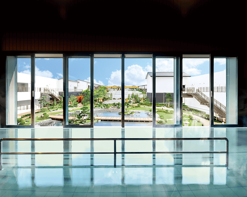 사계절의 자연을 느끼면서 피로를 풀 수 있는 노천탕과 약 1,000평 규모의 일본 정원을 바라보며 릴랙스 할 수 있는 가든온천 등 총 9종류의 탕을 즐길 수 있다.