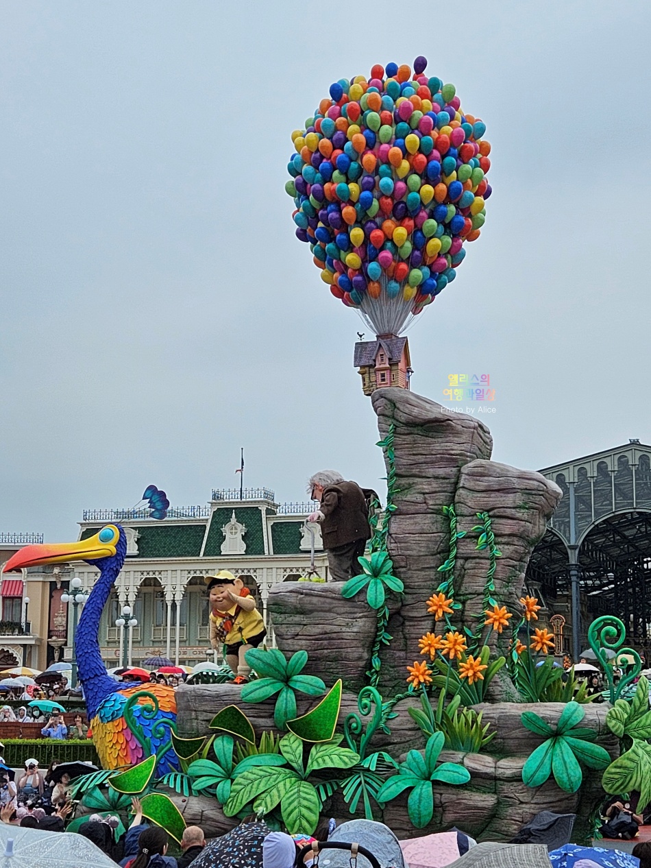 이렇게 멀리 앉았지만 카메라 줌 기능 덕분에 당겨서 볼 수 있었다. 어른이 되었음에도 테마파크의 퍼레이드는 여전히 재미있다. 어릴 적 기억이 떠올라서인지는 모르겠지만.