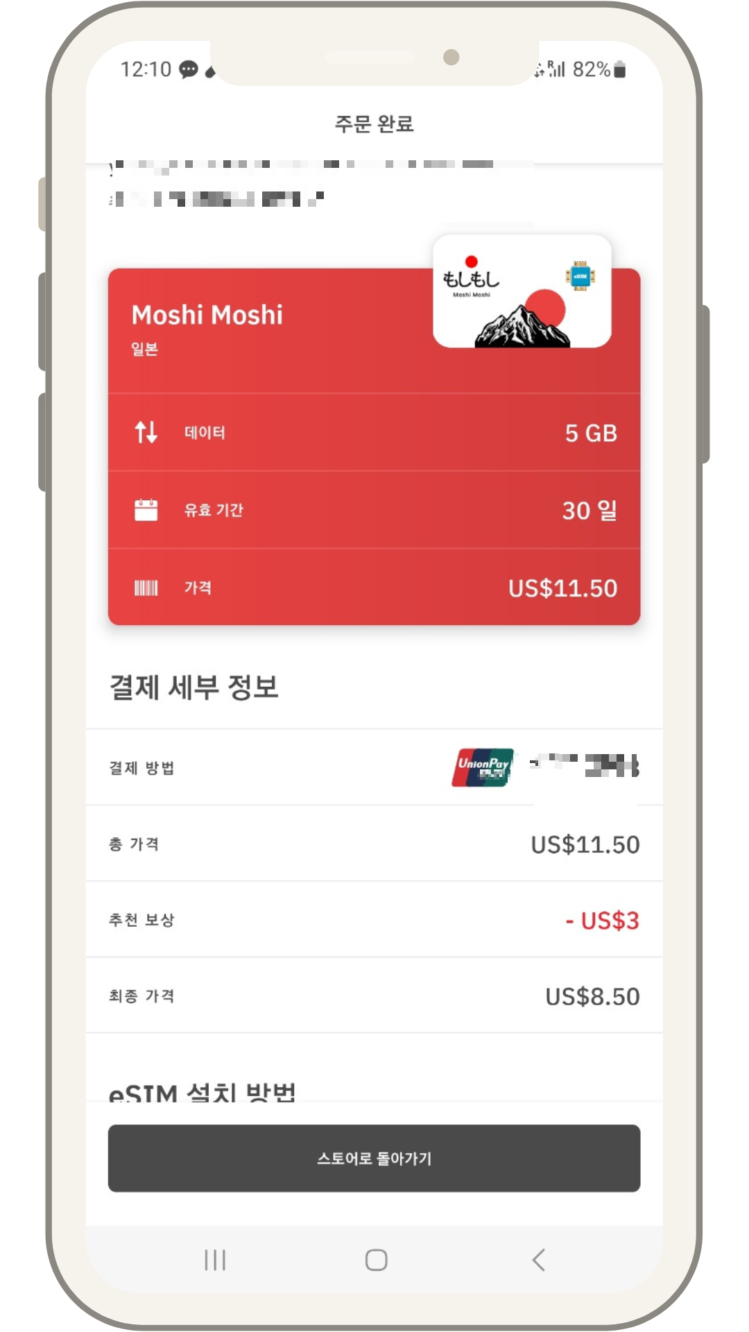 도쿄 출장 시에는 5GB를 8.5달러에 할인받아서 구매할 수 있었다. 여기에 필요한 데이터는 추가로 구매해서 곧바로 충전되어서 정말 편리했다.