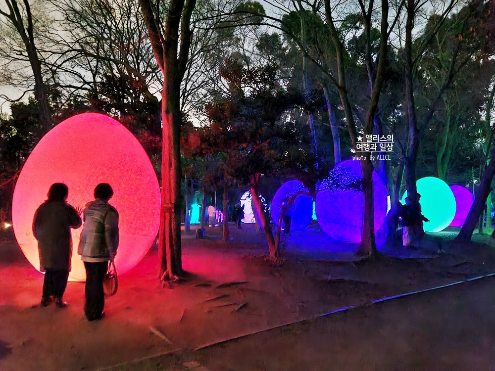늦은 밤이면 펼쳐지는 환상의 세계인 팀랩 오사카. 나가이 식물공원의 일부에 팀랩 오사카의 전시물이 설치되어 있어서 해가 떨어진 시원해진 저녁에 감각을 자극하는 다양한 전시를 볼 수 있다.
