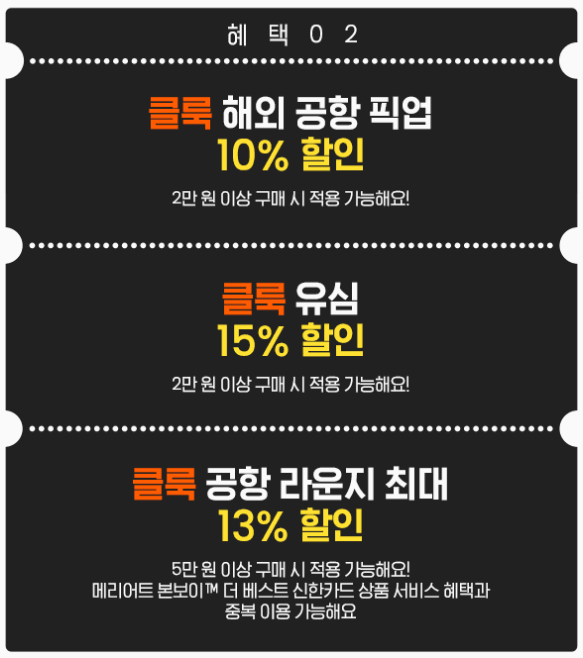 신한 메리어트 본보이 더 베스트 카드로 클룩에서 10만원 이상 결제시 6천 포인트 적립, 추가 할인쿠폰까지 사용할 수 있다.