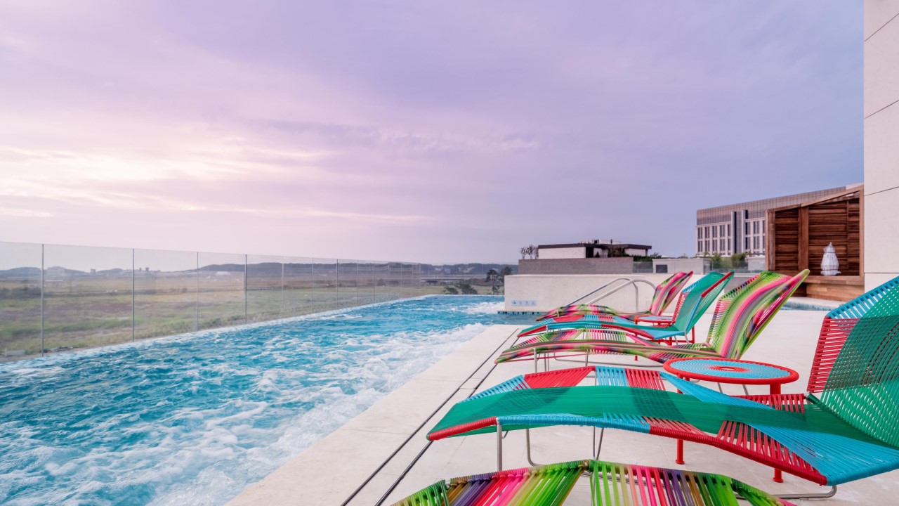 실내외를 넘나드는 짜릿한 슬라이드와 파도풀, 유수풀, 아쿠아 플레이 등 가족, 연인, 친구와 함께 즐기는 다양한 놀이가 가득한 워터파크. 모험심을 자극하는 어트랙션 시설과 높은 하늘과 호수를 바라보는 탁 트인 전망의 휴식 공간을 가지고 있다.