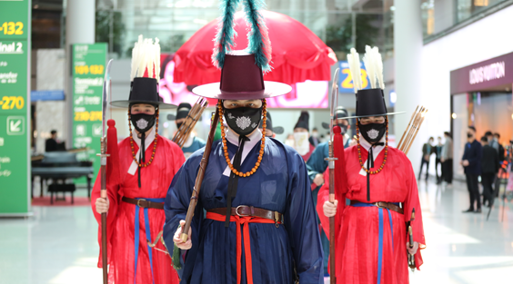 - 정보: 인천국제공항에서 조선시대 왕과 왕비를 만나 볼 수 있는 시간으로, 조선시대 왕실의 일상모습을 재현하는 행사이다. 왕가의 행렬 후, 기념사진을 찍을 수 있는 포토타임도 마련되어 있다. 옛 문헌 자료 및 기록화를 토대로 복원된 궁중복식과 의장물을 착용한 출연자들과 함께 기념사진도 찍으며 즐거운 추억을 만들어 보자.