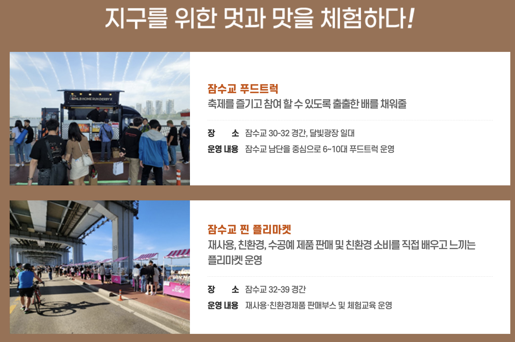 - 잠수교 푸드트럭: 축제를 즐기고 참여 할 수 있도록 출출한 배를 채워줄 푸드트럭