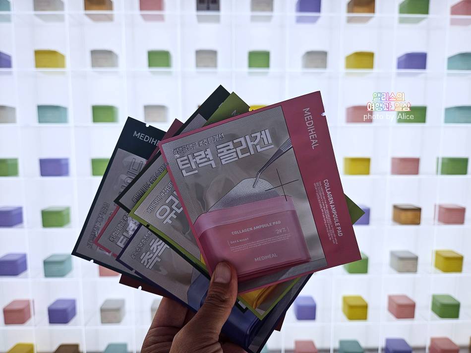 룰렛 이벤트에 참여했는데 운이 좋아서 1등에 당첨되었다. 곧바로 메디힐 콜라겐 앰플 패드 정품 한개를 받을 수 있어서 깜짝 놀랐던 날이기도! 예쁜 에코백과 샘플로 다양한 메디힐 앰플 패드 샘플지를 한장씩 총 7장을 받을 수 있고 필요시 엽서도 가져갈 수 있어서 메디힐의 다양한 상품을 경험해볼 수 있어서 무척 좋았다.