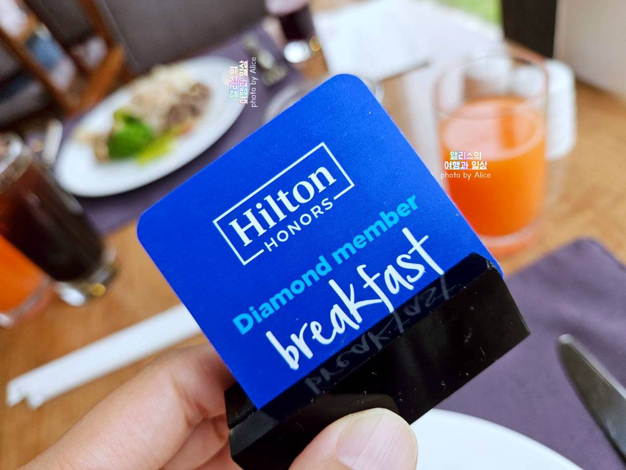 내가 골드 등급일 때 경주 힐튼 호텔을 이용할 때 주니어 메이플 스위트 룸을 무료 업글받은 적이 있다. 웰컴 어매니티는 물론 맛있는 아침 조식까지도 모두 무료로 이용할 수 있어서 무척 좋았다. 현재는 다이아몬드 등급을 획득하였고 덕분에 힐튼 호텔 내 라운지도 이용할 수 있어서 호캉스의 만족도가 무척 올라갔다.
