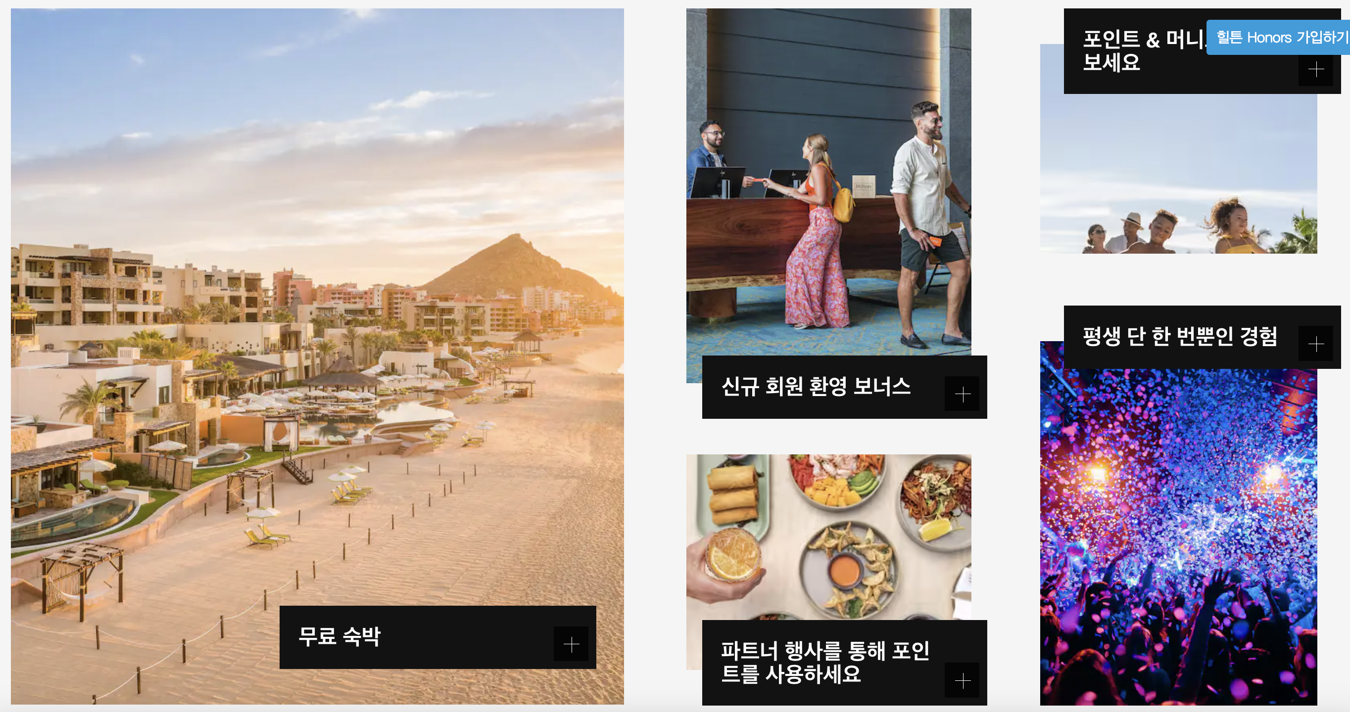 신규 힐튼 Honors 회원께는 첫 숙박 시 보너스 포인트 1,500포인트 적립, 두 번째 숙박 시 보너스 포인트 3,000포인트 추가 적립 혜택을 드립니다. → 힐튼 아너스 가입 바로가기