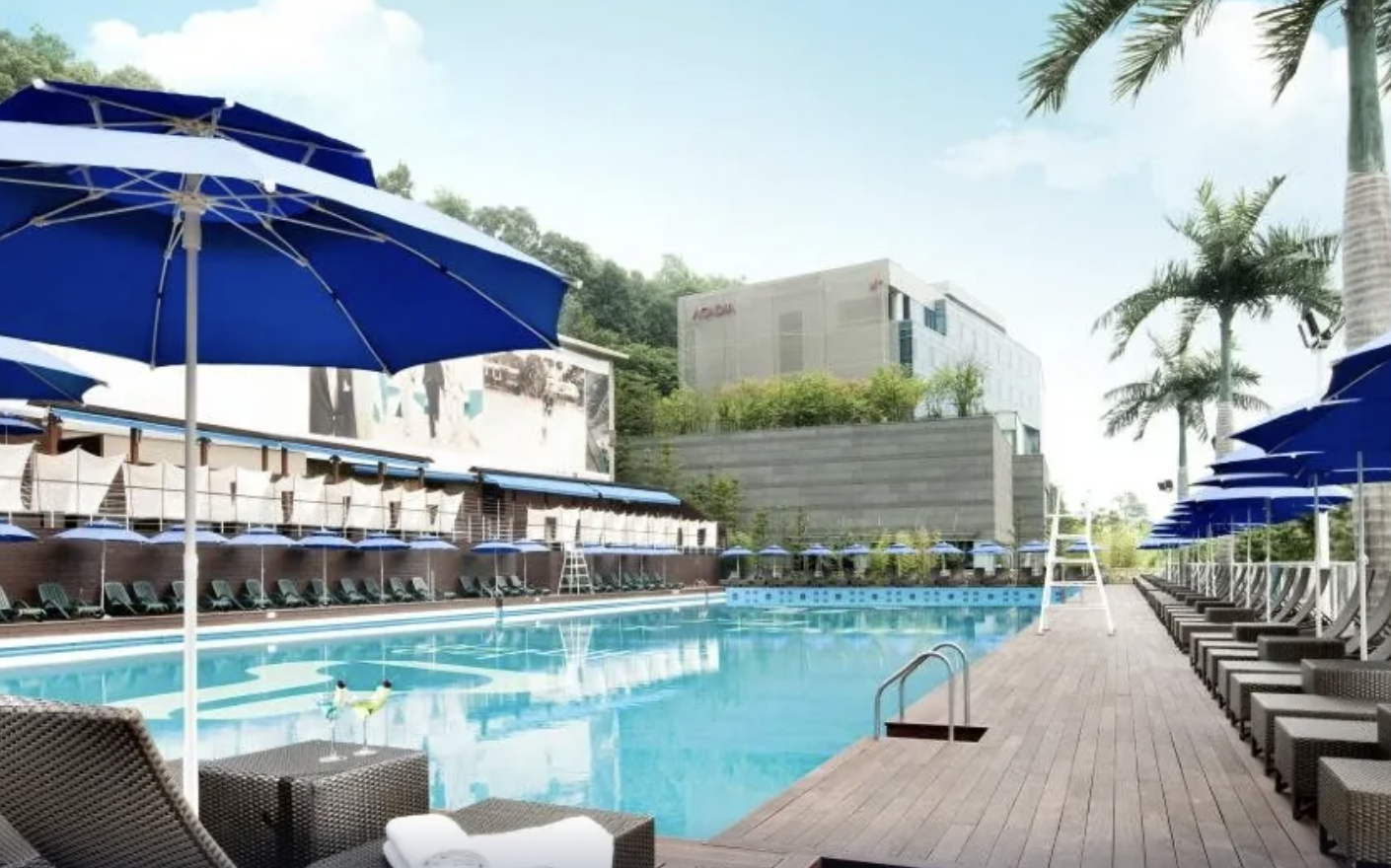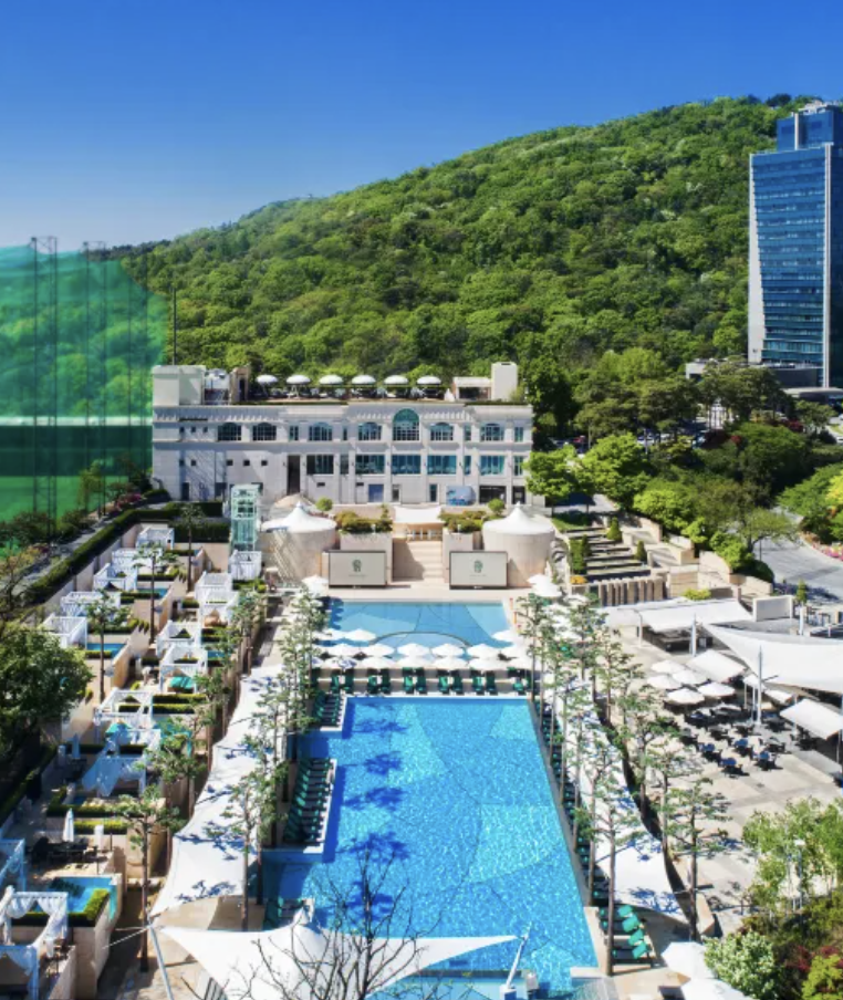 한국 대표 럭셔리 호텔 중 하나인 조선 팰리스 서울 강남. 수영장은 작은 편이지만 수영모 부영판 충분한 썬베드가 있고 화려한 디자인으로 꾸며져 있다. 피트니스 최고급 운동기구가 준비되어 있고 태블릿 자동 제어 IOT 커튼 등 최첨단 서비스가 준비되어 있는 곳이라 인기가 상당하다.