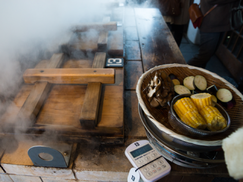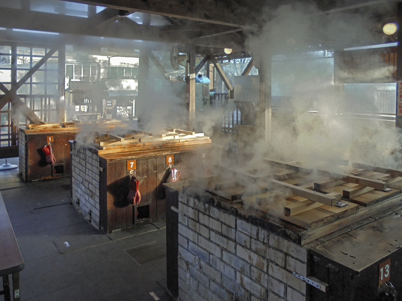 벳부의 온천에서 나오는 엄청나게 뜨거운 증기로 신선한 해산물/고기/채소를 쪄서 먹을 수 있는 곳이다. 이곳에서 식재료를 구매해도 되지만 유명 관광지답게 가격대가 높은 편이니 벳부 역이나 근처 마트에서 미리 저렴하게 식재료를 구입해서 찜기 이용권(500엔)만 구매하면 충분히 저렴하게 이용할 수 있다는 점 참고하자.