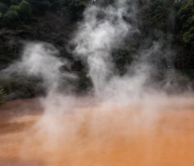 ∙ 가마솥지옥: 온천 용출량, 일본 제일 많은 곳으로 지옥의 분기로 밥을 짓고 있던 것이라고 하여 붙여진 이름이다.