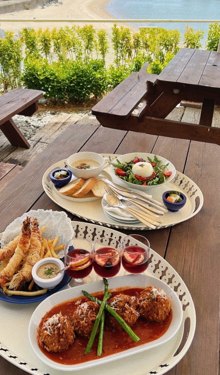 남해 라운지32 리조트에 있는 오션뷰 카페이자 조식 미역국 정식을 오전 9시~낮 12:30까지 판매를 하고 있다. 브런치메뉴로 아란치니, 샐러드, 파스타등도 판매를 하고 있음. 바로 앞이 바다라 사진 찍기도 좋다.